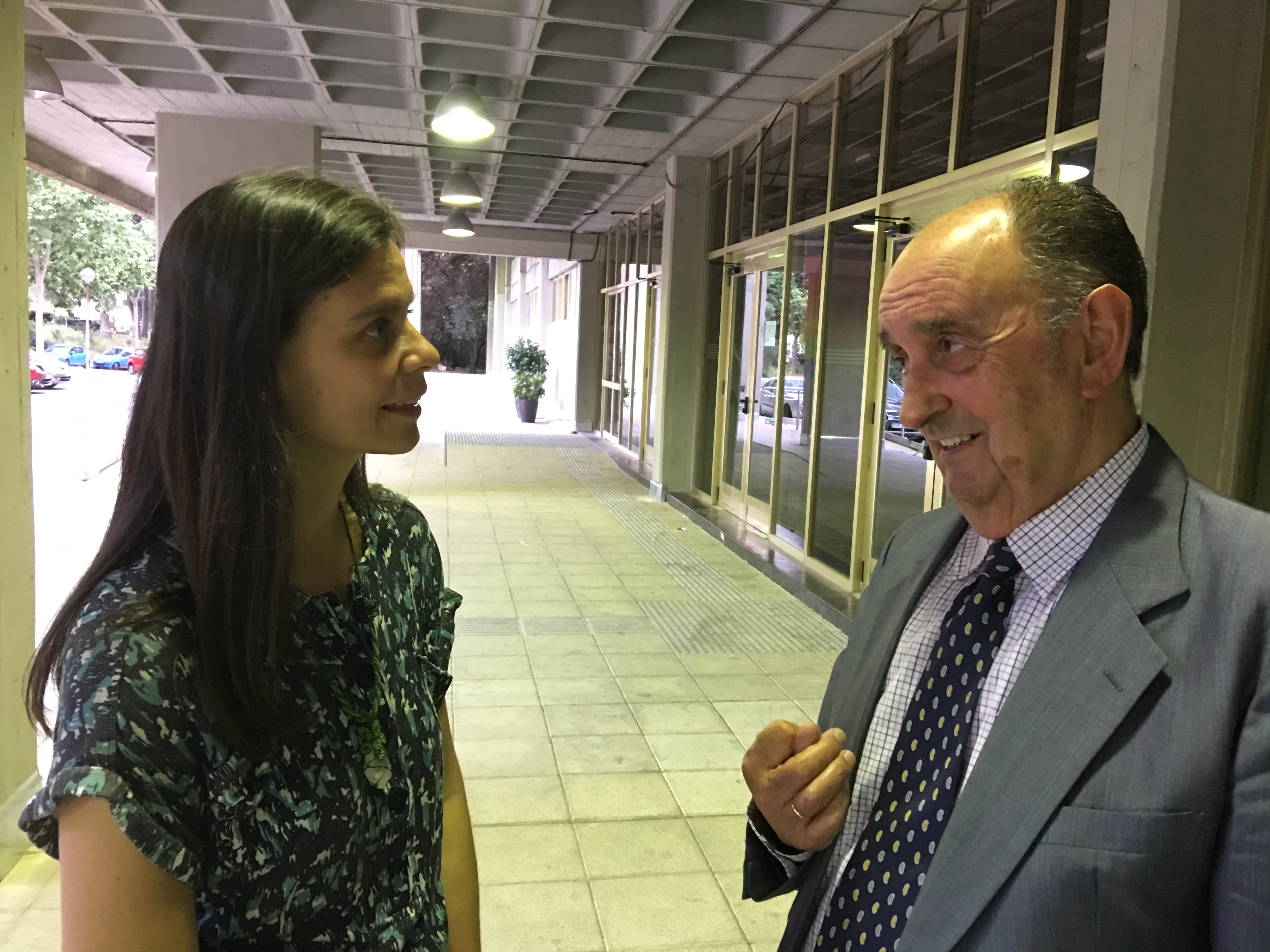 Comparto frases que me llegaron. «Si quieres comunicar, hazlo, haz esto, habla con la gente, diles lo que te pasa». O esta otra… «¿sabéis qué es lo primero que le digo a mis nietos? Cuando te caigas, ¿sabes quién te va a ayudar a levantarte? El suelo».  Le dije en varias ocasiones que no queríamos robarle tiempo y nos decía que si su compañero de escuela D. Juan Carlos estuviera allí, le atendería, cómo no iba a atendernos a nosotros. Otra frase sencilla y profunda «todo se está dando ahora mismo». Nos hablaba de Jesús y frases que les decía a los discípulos, de Krishna y Arjuna, de cómo se creó la facultad, de la política de aquellos tiempos, de penurias y alegrías. Nos enseñó el mala con el que medita diariamente y lleva colgado de su cuello… Nos habló de su mujer, más de 50 años con ella y todo el agradecimiento que sale de su corazón hacia ella. Un hombre que habla y cuenta y que llega porque ves la autenticidad en sus palabras, la coherencia en sus actos y el ejemplo en su presencia. Fue tanto lo que viví en esa media hora, que aún estoy procesando en mi interno todo lo que nos dio en sólo un ratito.